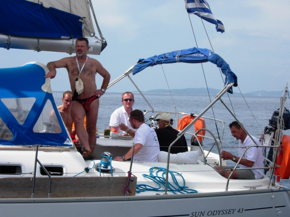 Nach pünktlichem Abflug und ruhigem Flug mit "Tiroler Pilot" angenehm in Krofu gelandet. Vom Flugplatz bis in die Marina Wolkenbruch mit Weltuntergangsstimmung. Recht unkomplitierte Bootsübernahme von zwei ausgezeichneten Schiffen mit anschliessendem Abendessen (für manch einen mit "Open End").