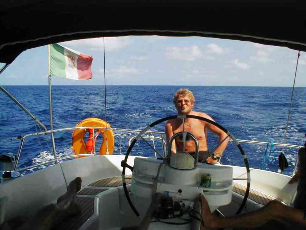 Samstag Abend sitzt man im Hafen von Palermonoch gemütlich zusammen. Das Wetter war gewittrig, die Stadt "molto italiana", die Mädels "molto belle", aber man freut sich nur auf das Segeln und das schöne Wetter.
